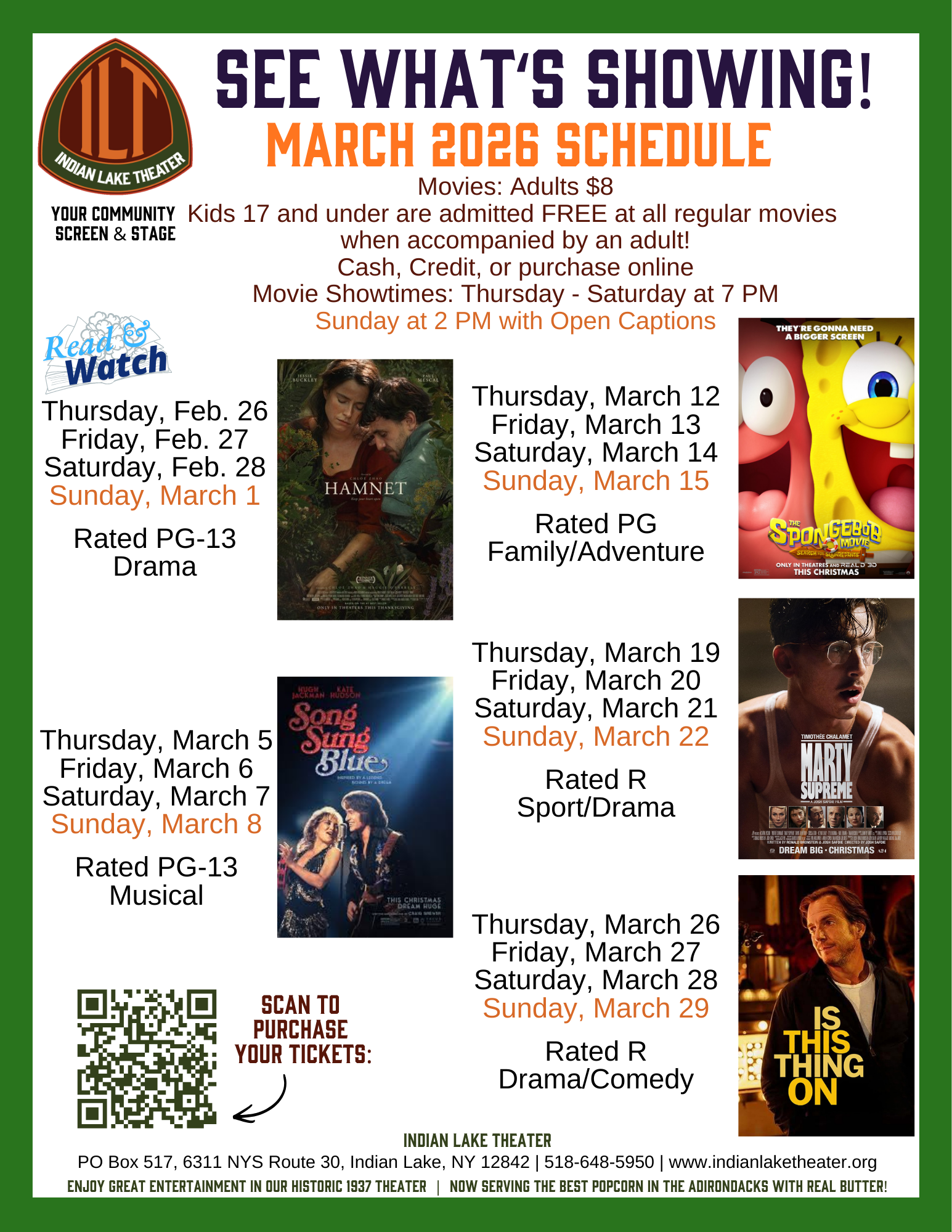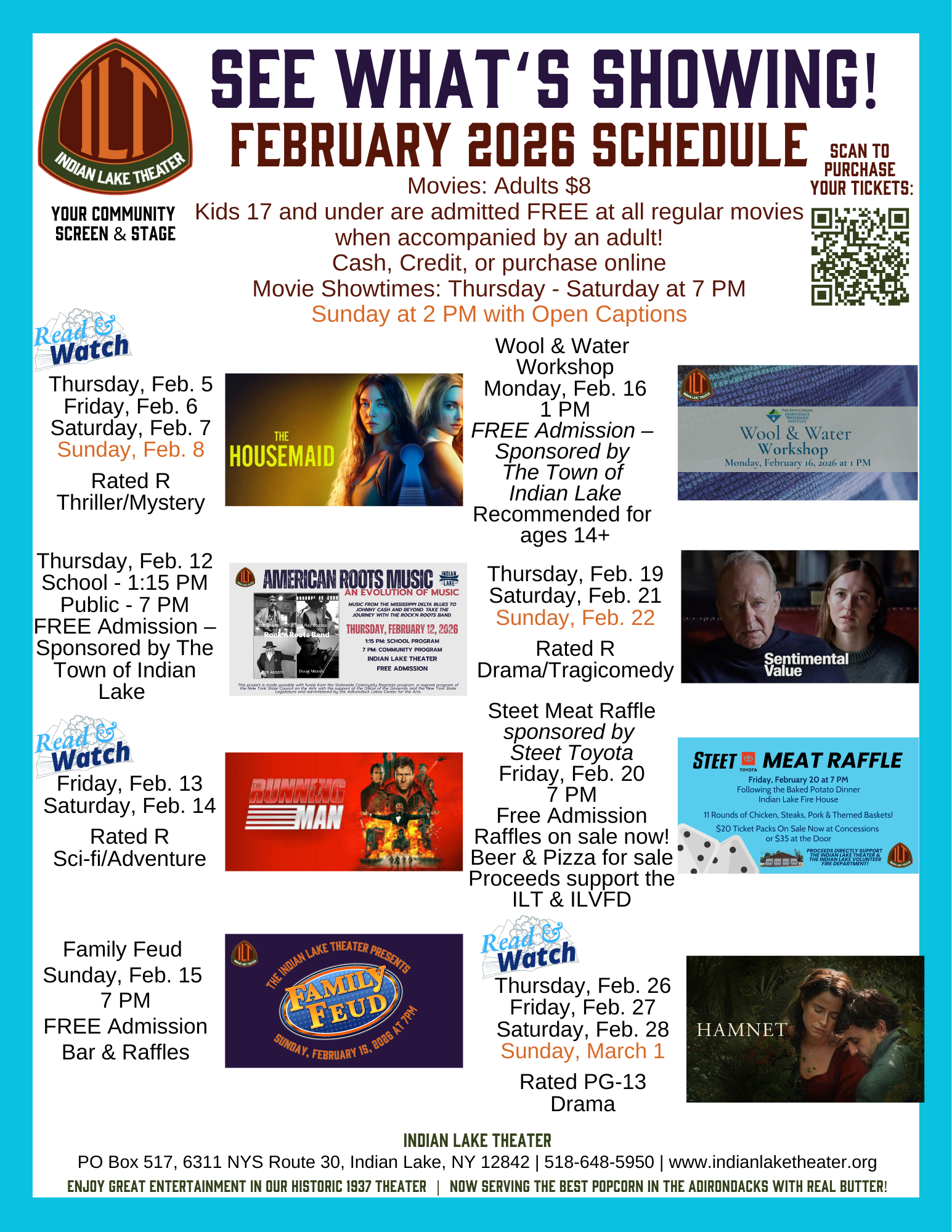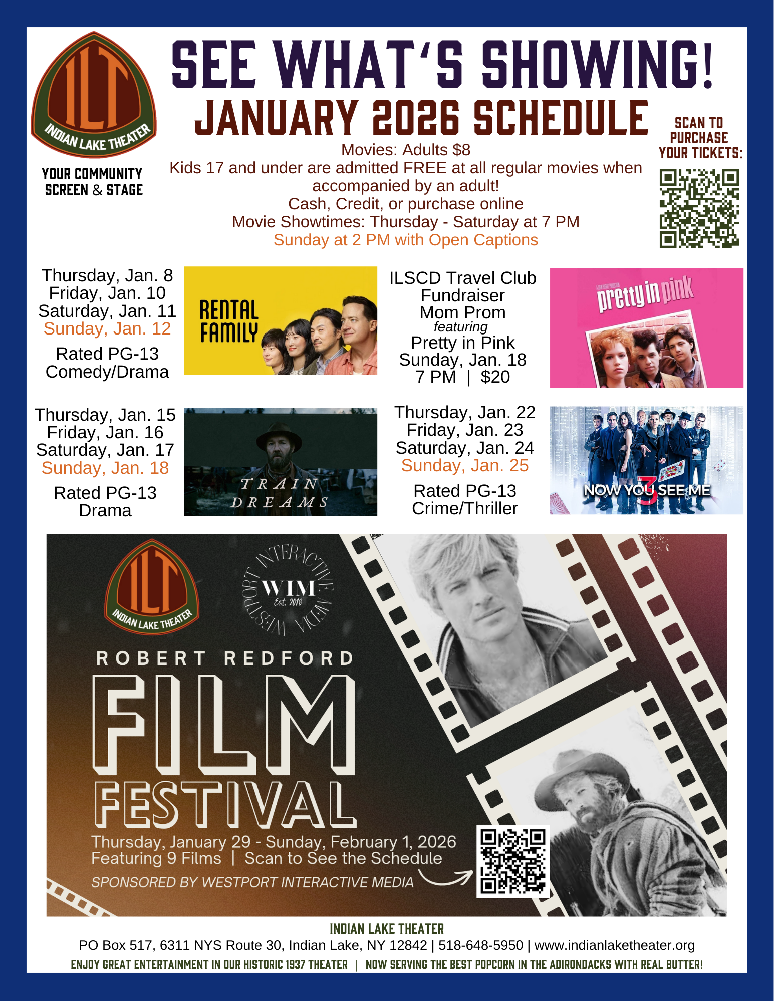 The mission of the Indian Lake Theater is to offer a gathering space that entertains, engages & enriches the economic and cultural life of the Central Adirondacks. The Indian Lake Theater is a non-profit and relies on the generous support of the community to fulfill our mission.
