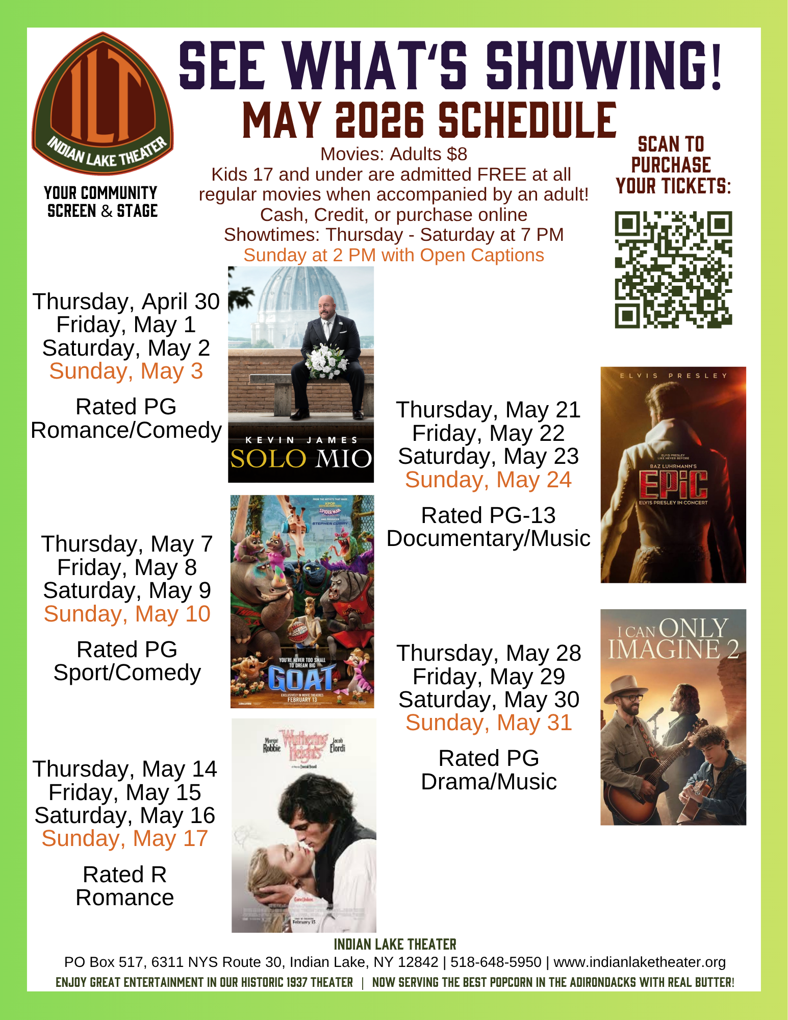Since its formation in December 2007 as a 501(c)(3) nonprofit organization, the Indian Lake Theater continues to offer a wide array of fun and affordable programming thanks to the generosity of our donors.